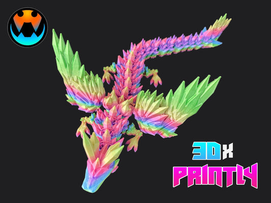 Winged Crystal Dragon - Cinderwind 3D Design - Rainbow / Color shift PLA